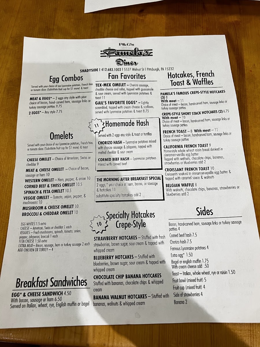 Welcome to Pamela's Diner, a beloved breakfast spot nestled in the heart of Pittsburgh at 3703 Forbes Ave. Known for its bustling atmosphere and stellar service, this diner has earned a reputation for serving hearty, delicious breakfasts that keep locals coming back for more.